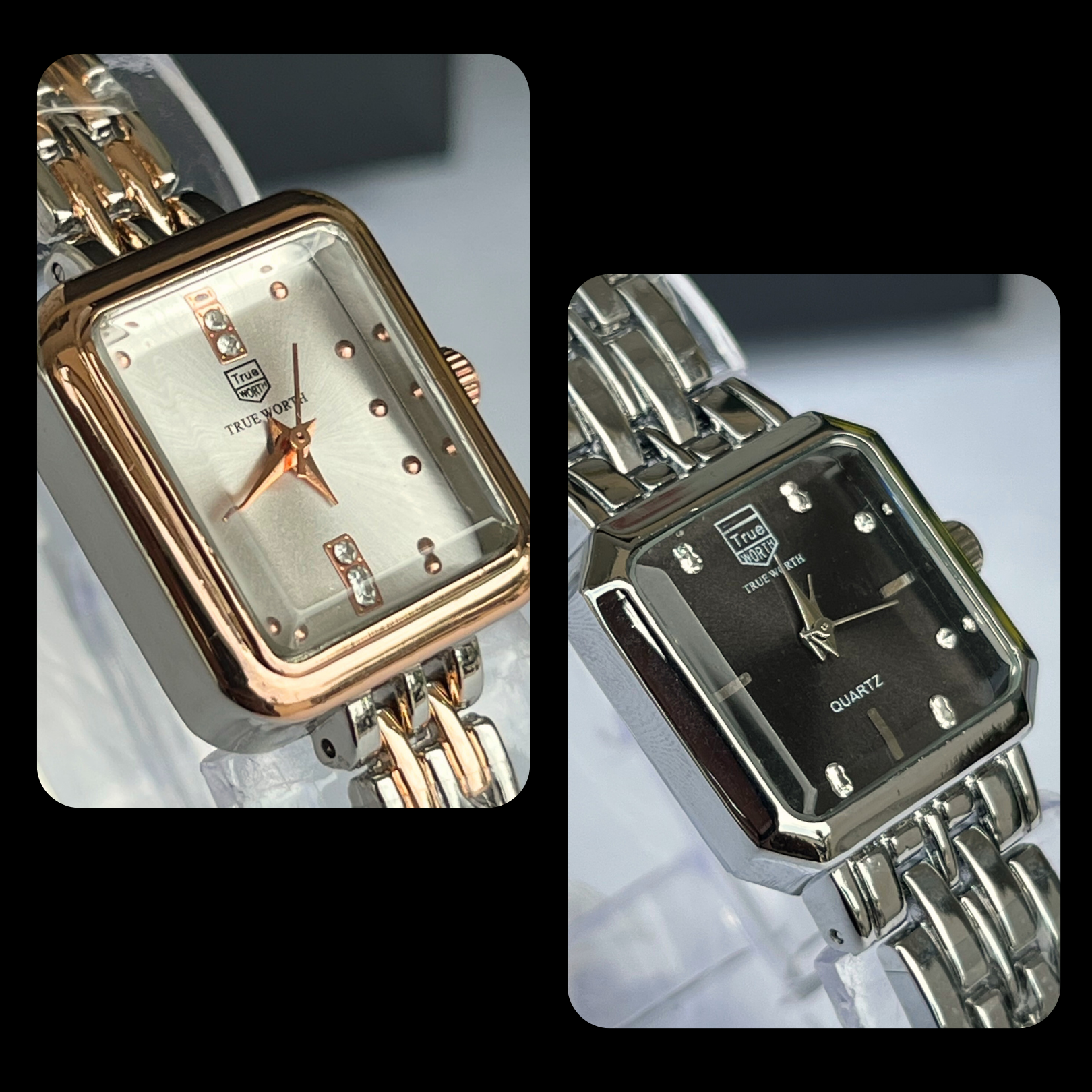 PORUIS BLACK DIAL SILVER STONE & STAINLESS STEEL WATCH
